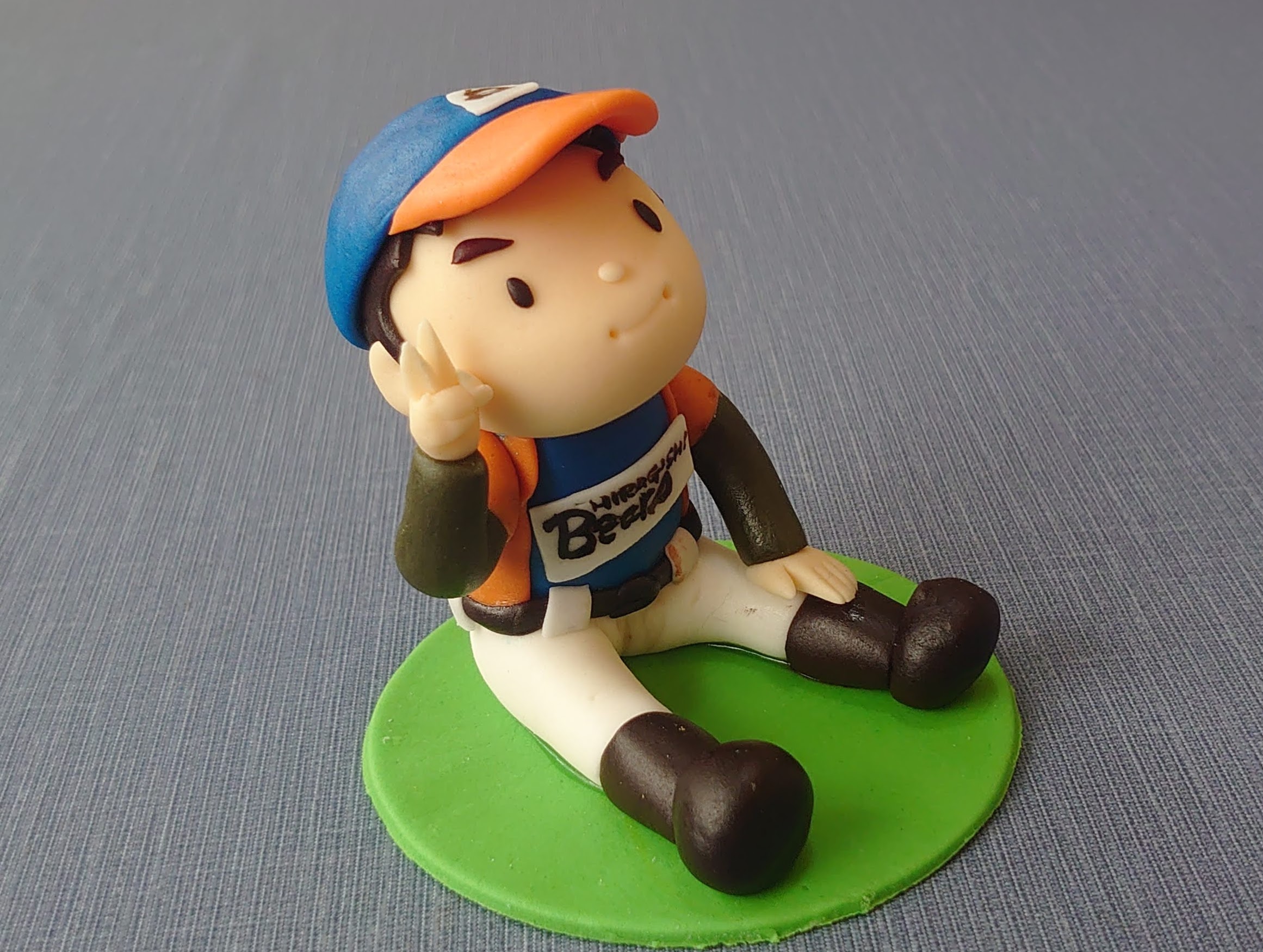 足を投げ出して座ってるポーズは作りやすいけど、野球選手には似合わないかも。